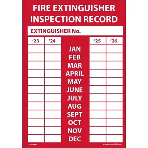 The monthly fire equipment inspection label is design to provide a dated record to verify the equipment was checked, is operational, and compliant with safety regulations for immediate use.